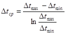 Де ∆tmax-максимальна різниця між температурами теплоносіїв в °С; ∆tmin- мінімальна різниця між температурами теплоносіїв в °С; ∆tmax=t’1- t’2 для прямотоку ∆tmax=t’’1- t’’2 Якщо зміна температур теплоносіїв невелика, то можна використати середньоарифметичний напір, тобто при