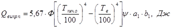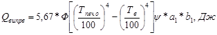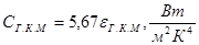 де: 5,67 - коефіцієнт випромінювання абсолютно чорного тіла, Вт/м2 . К4 ;