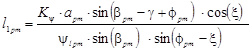 bpm − кут тертя на m -й ділянці передньої поверхні різальної кромки в момент p -го дискретного переміщення; apm − миттєва товщина зрізуваного шару на m -й ділянці передньої поверхні різальної кромки в момент p -го дискретного переміщення; g − кут нахилу передньої поверхні різальної кромки зуба кінцевої фрези; ylpm = l 0pm /l 1pm − відносна довжина ділянки пластичного контакту;