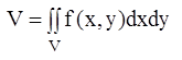 Объем тела, ограниченного сверху поверхностью z=f(x,y), снизу- плоскостью z=0 (плоскость ХОУ) и с боков- цилиндрической поверхностью, вырезающей на плоскости ХОУ область S, вычисляется по формуле: