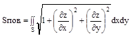 Вычисление площадей поверхностей фигур с помощью двойного интеграла Если гладкая поверхность задана уравнением z=f(x,y), то площадь поверхности (Sпов.), имеющей своей проекцией на плоскость ХОУ область S, находится по формуле:
