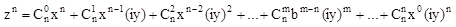 1. Комплексное число задано в алгебраической форме. z=x+iy, то zn находим по формуле бинома Ньютона :