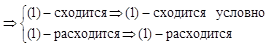 +…= Возьмем ряд Если ряд (3) сходится, то ряд (1) также сходится и называется абсолютно сходящимся (ответ получен сразу). Если ряд (3) расходится, а: - ряд (1) сходится, то ряд (1) называется условно сходящимся; - ряд (1) расходится, то ряд (1) называется расходящимся. При исследовании знакоположительных рядов можем получить 2 ответа: ряд сходится или ряд расходится. При исследовании знакопеременных рядов могут получиться 3 ответа: ряд сходится абсолютно, ряд сходится условно, ряд расходится. Схема Если (3) – сходится Если (3) – расходится При исследовании на сходимость знакопеременного ряда (1) начинать надо с разбора знакоположительного ряда (3). Т.к. ряд (3)- знакоположительный ряд, то к нему можно применить все признаки сходимости для знакоположительных рядов. Из расходимости ряда (3) не следует расходимость ряда (1), но если (3) расходится по признакам Даламбера или Коши радикальный , то расходится не только ряд (3), но и ряд (1) . Если ряд – знакочередующийся, то для него дается еще один признак сходимости : Признак Лейбница Если для знакочередующегося ряда b1-b2+b3-b4+…(bn 1