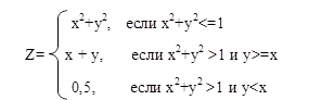 3. Вычислить значения функции и распечатать в виде таблицы xi , yi , zi ; Z=X+4Y.