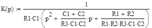 Рис.4.3 – Функциональная схема структуры Рауха второго порядка. Данное функциональное звено представляет собой активный фильтр второго порядка, построенный на основе операционного усилителя. 5 МОДЕЛИРОВАНИЕ ФИЛЬТРА НА ФУНКЦИОНАЛЬНОМ УРОВНЕ В СИСТЕМЕ MATHCAD В ЧАСТОТНОЙ И ВРЕМЕННОЙ ОБЛАСТЯХ (РАСЧЕТ АЧХ, ФЧХ, ХРЗ, ХГВЗ, ИХ, ПХ В НОРМИРОВАННОМ И ДЕНОРМИРОВАННОМ ВИДАХ) Для моделирования на функциональном уровне будем использовать MathCAD . Операторную передаточную функцию можно записать в следующем виде: