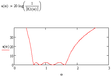 Рисунок 5.1 АЧХ фильтра прототипа нижних частот в нормированном виде Для построения характеристик ПФ, осуществим пересчёт параметров. Исходя из того, что Kфнч(p)=А(p~+1/p~)=Kпф(p~) (5.4) Получим выражения для пересчёта параметров: