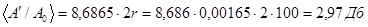 Ослаблення в децибелах на подвійній відстані 100 мм згідно з (8.2):
