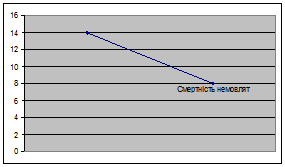 Рисунок 2. Народжуваність у Москві 1996-2009 роки З даного рисунка ми можемо побачити, що значно виросла народжуваність протягом останніх 13 років. Також знизилось число дівчаток, які народжують у віці від 14 до 17 років. Якщо у 1997 році таких у Москві було зареєстровано тисяча, то в минулому - біля 500 чоловік. Для подальшого зниження числа породіль у цій віковій групі, необхідно посилити роботу у школах, відмічають лікарі акушери-гінекологи. Крім цього, в останні 5 років у Москві вдалося знизити смертність немовлят з 14 до 8 випадків на 1000 дітей (Рисунок 3). Рисунок 3. Смертність немовлят у 1996-2009 роки Як видно з рисунка, смертність знизилася з 14 до 8 немовлят. Знизити смертність немовлят вдалося за рахунок посилення засобів по зниженню післяпологової смертності, зокрема, збільшення числа реанімаційних місць і комплексу інших заходів. За інформацією голови департаменту охорони здоров’я, сьогодні очікувана середня тривалість життя чоловіків у Москві складає 69 років, жінок – 76 (Рисунок 4). По Росії - 60 років та 73 роки відповідно