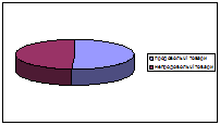 Рисунок 8. Частка Москви в обсягах роздрібного товарообігу Росії Провідна роль у задоволенні купівельного попиту москвичів належить підприємствам організованої роздрібної торгівлі (без продажу товарів на речових, змішаних і продовольчих ринках), це - 78,8% обігу роздрібної торгівлі, з них на частку великих і середніх організацій 39%, суб'єктів малого підприємництва 35%. Їх обіг 1098,5 млрд. руб. або на 100,7% перевищення обсягу порівняно з попереднім роком у фактичних цінах, у порівнянних - зниження на 9,6% (2008 р. - 110,2%). Обсяг продажу товарів на речових, змішаних і продовольчих ринках склав 296,4 млрд. руб., із часток ринку в загальному обсязі обігу роздрібної торгівлі 21,2% (2008 р. - 18,3%). Індекс фізичного обсягу до попереднього року - 111,5% (2008 р. - 106,0%). У структурі обігу роздрібної торгівлі питома вага продовольчих товарів - 50,7%, непродовольчих товарів відповідно 49,3% (Рисунок 9).
