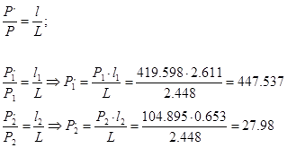 4. Находим величину действия сил Р1 и Р2 на плечо L: