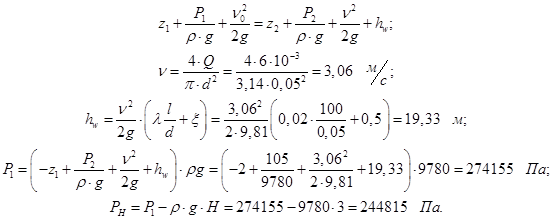 №1. Трубопровод диаметром dдлиной l = 150 м, подготовленный к гидравлическому испытанию, заполнен водой при атмосферном давлении. Какое количество воды необходимо дополнительно подать в трубопровод, чтобы давление в нем поднялось до значения рн по манометру? Модуль упругости воды Е= 2,0 ГПа.