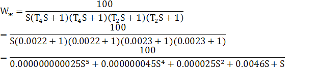 звено апериодическое, иначе колебательное Тм2 >4ТмТя 0,0182 > 4∙0,018∙0,002 0,000324 > 0,000144 звено апериодическое.