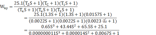 ν =1, k=4.5, ТД=1.3, TС=1.3, T1=0.0157, T2=0.0023