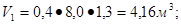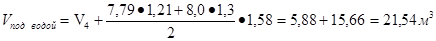 где V=V1 + V2 + V3 + V4 =4,16+2,66+46,02+5,88=58,81м3