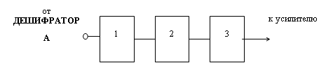 Рисунок 2.3 - Структурная схема дешифратора 1 – усилитель; 2 – усилитель-ограничитель; 3 – эмиттерный повторитель; 4 – полосовой фильтр; 5 - эмиттерный повторитель; 6 – формирователь. Детектор 3 предназначен для выделения низкочастотного сигнала и подавления побочных продуктов преобразования. Структурная схема детектора представлена на рисунке 2.4.