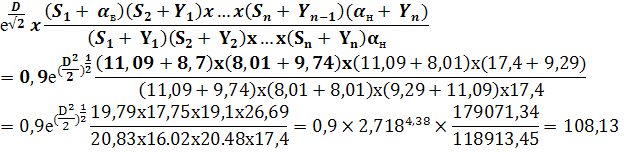 D1=D3=0,027*11,09=0,299; 0,299 < 1 значит Y1 по формуле 10 считаем, а Y3 по формуле 11 D2=0,7*8,01=5,607, значит Y2=S2=8,01