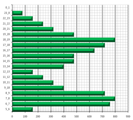 Определяем значения мощности пассажиропотока по часам суток Qпасс . = Qmax .* ŋн i Табл. 3