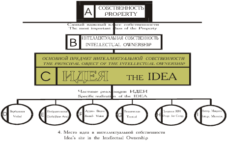 На рис. 5 показана блок-схема системы законов об интеллектуальной собственности. На ней указаны охраняемые объекты — с соблюдением соответствия латинских литер на рисунках 4 и 5.
