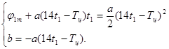 Для нахождения параметров траектории решим систему уравнений (1.3), приравняв значения угла поворота и скорости нагрузки в общих для сопряженных участках точках.