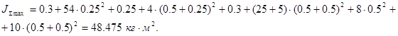 Динамический момент инерции третьего звено J 3 принимает значения в диапазоне от J 3 min до J 3 max. Масса груза, зажатого в захватном устройстве m , может меняться в пределах от m min до m max . Изменение данных параметров приводит к изменению момента инерции нагрузки J . Определимминимальное и максимальное значение момента инерции нагрузки J :