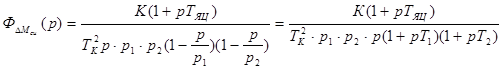 Заметим, что знаменатель передаточной функции двигателя по возмущающему воздействию совпадает со знаменателем передаточной функции по управляющему воздействию. Поэтому представим знаменатель функции (2.18) в следующем виде: