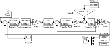 Таким образом, рассчитанная динамическая ошибка системы 3. Моделирование спроектированного управляемого привода3.1 Модель скорректированной системы при отработке ступенчатого сигнала3.1.1 Цифровая модель скорректированной системы при отработке ступенчатого сигнала при минимальной нагрузке на управляемый приводНа рис. 3.1 приведена цифровая модель скорректированной системы при отработке ступенчатого сигнала при минимальной нагрузке на управляемый привод, разработанная в программном пакете MATLABверсии 7.3.