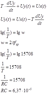 3.6 Устройство реализации функции F1Задание: F1=ФВЧ 1го порядка, fгр =2,5 кГц, Ку =6дб, х1 =-6Дб. На рисунке 11а изображены амплитудо-частотные характеристики ФВЧ. Передаточной функцией ФВЧ 1го порядка является передаточная функция апериодического звена 1го порядка. Рассчитаем ФВЧ с помощью передаточной функции звена 1го порядка.