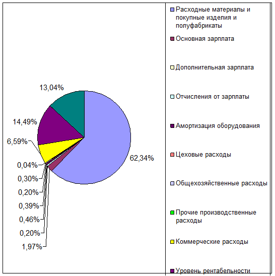 Основная заработная плата = 22 * 177,22 = 3898,84 тенге. Статья 3. «дополнительная заработная плата» - начисляется радиотехнику за неотработанное время, которое по действующему трудовому законодательству должно быть оплачено (резерв на отпуск). Дополнительная заработная плата = основная заработная плата * 10% 3898,84 * 10% = 389.88 тенге. Статья 4. «отчисления от заработной платы» – установлены в размере 21%. Отчисления от заработной платы = (основная заработная плата + дополнительная)* 21% (3898.84 + 389.88) *21% = 900.63 тенге Статья 5. «расходы на содержание и эксплуатацию оборудования» - к этой статье относятся затраты на содержание, амортизацию и текущий ремонт оборудования, транспорта, инструментов и приспособлений. Амортизация оборудования = основная заработная плата *20% 3898.84 * 20% = 779.77 тенге Статья 6. «цеховые расходы» - в этой статье объединены затраты по обслуживанию и управлению в цехах: зарплата аппарата управления цеха, содержание и текущий ремонт зданий и оборудования цехового назначения, расходы по охране труда и технике безопасности. Цеховые расходы = основная заработная плата*10% 3898.84 * 10%= 389.88 тенге Статья 7. «ИТОГО цеховая себестоимость» Цеховая себестоимость = расходные материалы + основная заработная плата + дополнительная заработная плата + отчисления от заработной платы + амортизация оборудования + цеховые расходы 123220 +3898.84 + 389.88 + 900.63 + 779.77 + 389.88 = 129579 тенге Статья 8. «общепроизводственные расходы» - к этой статье затраты связанные с управлением предприятием и организации управления в целом: заработная плата административно- управленческого и обслуживающего персонала, оплата услуг сторонних организаций, оплата хозяйственных расходов (служебные командировки, почта, телефон и другие), содержание аммортизации и текущий ремонт административного здания. Общепроизводственные расходы = основная заработная плата *15% 3898.84 * 15%= 584.83 тенге Статья 9. «прочие производственные расходы» - в эту статью включаются относительно мелкие по величине, но неизбежные при обеспечении нормального хода производства затраты. Прочие производственные расходы = основная заработная плата *2% 3898.84 * 2% = 77,98 тенге Статья 10. «ИТОГО производственная себестоимость». Производственная себестоимость = цеховая себестоимость + общепроизводственные расходы + прочие производственные расходы 129579 + 584.83 + 77.98 = 130241.81 тенге Статья 11. «коммерческие расходы» – в этой статье учитываются затраты, связанные с реализацией и послепродажным обслуживанием продукции и услуги: расходы на хранение, упаковку, транспортировку, рекламу, гарантийное и послегарантийное обслуживание аппаратуры. Затраты по этой статье установлены в размере 10% от производственной себестоимости. Коммерческие расходы = производственная себестоимость*10% 130241.81 * 10% = 13024.18 тенге Статья 12. «ИТОГО полная себестоимость». Полная себестоимость = коммерческие расходы + производственная себестоимость 130241.81 + 13024.18 = 143265.99 тенге 6.2 Расчёт цены объекта и уровня рентабельностиПо уровню рентабельности предприятия определяется величина, планируемой прибыли предприятия, которая является основным показателем конечных финансовых результатов предприятия, характеризует эффективность его деятельности и является инструментом экономического стимулирования работы предприятия. Рентабельность это относительная величина прибыли, она определяется в пр