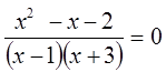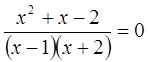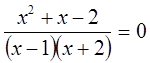 ОДЗ этого уравнения {х ≠ 1, х ≠ -3} Мы знаем, что дробь равна нулю в том случае, когда ее числитель равен нулю, т.е. х²+х–2=0, а знаменатель не равен 0. Решая уравнение х²+х–2=0, находим корни х1=1, х2 = –2 . Но число 1 не входит в ОДЗ данного уравнения и значит, исходное уравнение имеет один корень х=-2.