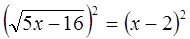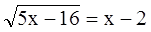 Решить уравнение Возведем обе части уравнения (1) в квадрат: далее последовательно имеем: 5х – 16 = х² - 4х + 4 х² - 4х + 4 – 5х + 16 = 0 х² - 9х + 20 = 0