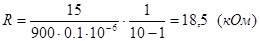 получим при C = 0.1 мкФ, f = 900 Гц , E = 15 В тогда R равно: