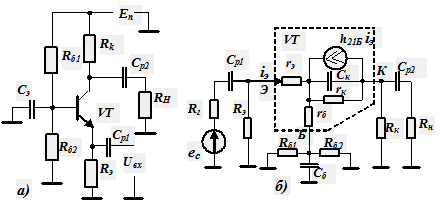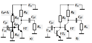 Входное сопротивление каскада определяется параллельным соединением резисторов делителя Rб1, Rб2 и входным сопротивлением транзистора: