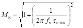 Как и для усилителя на биполярном транзисторе, для количественной оценки уменьшения усиления используют коэффициент частотных искажений, который на нижних частотах с достаточной точностью можно определить по формуле (4.29). Эквивалентная постоянная времени