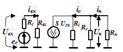 Рисунок 5.2. Эквивалентная схема усилителя ОИ для средних частот Входное сопротивление в основном определяется сопротивлением резисторов, подсоединенных к затвору. Для схемы рисунка 5.1, а Rвх = Rз, для двух остальных