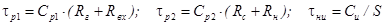 Если задан общий коэффициент частотных искажений Мн на весь каскад, то эту величину следует распределить между элементами, уменьшающими передачу сигнала в области низших частот и затем определить необходимые значения емкостей. Например, переходную емкость Ср1 можно вычислить по формуле
