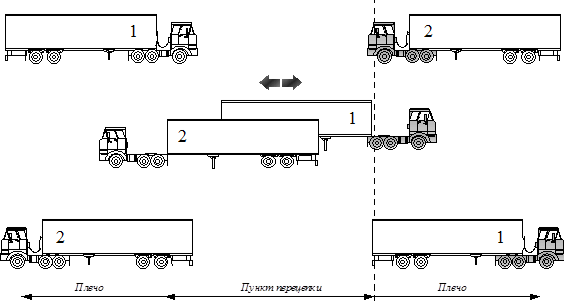 При применении участковой (плечевой) системы организации движения линейные тягачи обращаются только на определенных участках автолинии, полуприцепы же продвигаются с грузом на всем протяжении его доставки, поступая в конечных пунктах маршрута в местный маневровый оборот.
