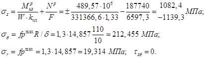 - тангенциальные напряжения разрыва цилиндрических элементов от воздействия внутреннего давления ;