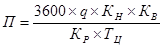где: q- геометрическая вместимость ковша равна 10 м3 КВ - коэффициент использования рабочего времени 0,85 КР - коэффициент рыхления 1,3 КН - коэффициент наполнения 0,8 ТЦ - продолжительность цикла, с