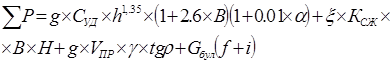=0,5, y=0,5; H-высота слоя грунта в ковше равна 1,5 м