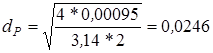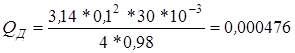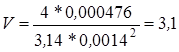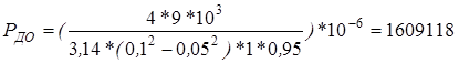 где: Qр – расчетный (максимальный) расход в соответствующей гидролинии при рабочем ходе поршня; Vo – оптимальная скорость рабочей жидкости; для напорных гидролиний Vo = 3-5 м/с; для сливных - Vo = 2-3 м; для всасывающих - Vo = 0,7-1,2 м/с. Для напорных гидролиний (Vo = 4)