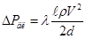 где λ – коэффициент Дарси, зависит от числа Рейнольдса;