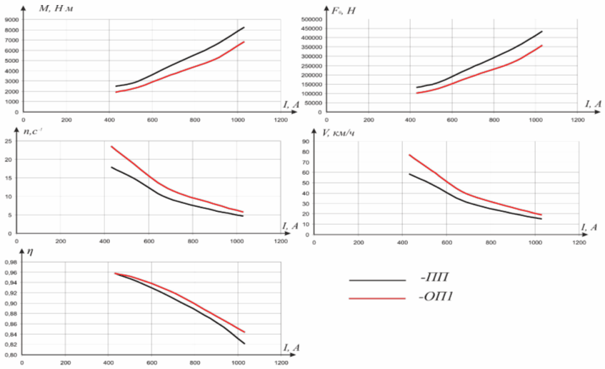 θ°=100 °С rя = 0,013 ∙ (1+0,0033 ∙ (100 – 20)) = 0,0164 Ом rв = 0,0105∙ (1+0,0033 ∙ (100 – 20)) = 0,0133Ом rдп = 0,00821 ∙ (1+0,0033 ∙ (100 – 20)) = 0,01038Ом Расчет нагрузочных характеристик ТЭД сводим в таблицу 2. Таблица 2 – Расчет нагрузочных характеристик выбранного ТЭД