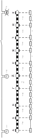 Рисунок 2.4 Скелетная схема кабельной линии на перегоне А-Б. В соответствии с этими правилами и нормами составляем расчётную таблицу кабелей ответвлений и вторичной коммутации на перегоне А-Б. Таблица 2.