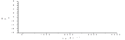 Мал.7. Криві відмінності дисперсій звичайного показника заломлення кристалів з домішкою магнію від дисперсій бездомішкового кристала і експериментальні крапки для кристалів No 2....n, No 3....l, No 5....s, No 6....t. 2.2 Дисперсія в поляритонної області спектру Дисперсійні характеристики кристалів в середньому ГИК діапазоні ми отримали використовуючи спонтанне параметричне розсіяння. Цей метод дозволяє зміряти уявну і дійсну частину діелектричної проникності в області спектру, де поглинання кристала велике: на частотах фононного поляритону і на верхній поляритонній гілки. На відміну від прямого вимірювання ми отримуємо інформацію про ГИК спектрі використовуючи дисперсійні характеристики у видимій області спектру. При процесі СПР частоти і хвилеві вектора взаємодіючих хвиль повинні задовольняти умовам частотного і просторового синхронізму (1). Якщо ми знаємо дисперсію кристала на частотах накачування і сигнальної хвилі, то ми можемо отримати дисперсію на поляритонних частотах, використовуючи рівняння (1). На установці, зображеній на рис.3, отримані двовимірні частотно-кутові розподіли інтенсивності розсіяного випромінювання кристалів No.2,3,4,5. По цих спектрах визначена дисперсія звичайного показника заломлення кристалів на частотах 1.7-10 мкм і 17,5-20,8 мкм. На нижній поляритонной гілки вказана помилка, яка з'являється при вимірюванні частоти і кута розсіяння сигнальної хвилі. На верхній поляритонній гілці помилка не перевищує розміру символу, що позначає експериментальну крапку. Таким чином погрішність вимірювання показників заломлення спектру методом СПР не дозволяє нам відмітити вплив домішки на дисперсію кристалів в ГИК області. Слід відмітити, що тільки в кристалі No.5 використовувалася геометрія розсіяння, в якій “еліпс ” розсіяння на верхній поляритонній гілці досягав довгохвильової області видимої частини спектру. Можливо, якщо розглянути всі кристали в тій геометрії розсіяння, в якій можна отримати дисперсію верхньої поляритонній гілці на частотах поляритону великих 3000 см-1, то ми зможемо виявити відмінність в дисперсійних характеристиках кристалів на відповідних частотах. Але поблизу фононної частоти методом СПР це зробити неможливо, оскільки дисперсія тут має велику крутизну.