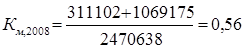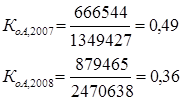 В 2008 году показатель составил 0,36 копеек, это означает, что на 1 рубль стоимости всех активов мы получаем 36 копеек дохода. Это меньше чем в 2007 году на 13 копеек. 2) Коэффициент оборачиваемости внеоборотных активов: показывает скорость оборота немобильных активов предприятия за анализируемый период.