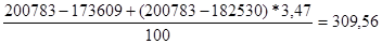 где, УР КР1 – уровень коммерческих расходов за отчётный период; УР КР0 – уровень коммерческих расходов за базисный период. Общее влияние факторов 608,1+282,5+2569,4+2083,3=5543,3 (тыс. руб) Определим влияние данных факторов в 2007 году по отношению к 2006 году: 1) выручки от реализации в сопоставимых ценах 182530 ∆ПРВ