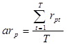 rpt – доходность портфеля за период t; arp - средняя доходность портфеля; T – количество периодов, на которые разбит временной интервал. Средняя доходность портфеля определяется по формуле:
