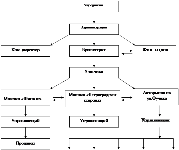 Как показывают данные таблицы 2.1. численность персонала ООО «АвтоАльянс» с 2003 по 2005 год существенно увеличилась, более чем в 2 раза по сравнению с 2004 годом, в основном за счет роста торгового персонала. Данный факт связан с расширением деятельности компании. Организационная структура ООО «АвтоАльянс» построена по линейно-функциональному принципу и отражена на рисунке 2.1.