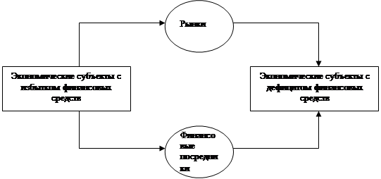 Напомним крупными блоками классификацию финансовых рисков. Они подразделяются на риски, связанные с покупательной способностью денег, и на риски, связанные с вложением капитала (инвестиционные риски). К рискам, связанным с покупательной способностью денег, относятся следующие разновидности рисков: инфляционные и дефляционные риски, валютные риски, риск ликвидности. Инвестиционные риски включают в себя следующие подвиды рисков: риск упущенной выгоды, риск снижения доходности, риск прямых финансовых потерь. Риск снижения доходности подразделяется на процентные риски и кредитные риски. А кредитные риски включают в себя биржевые риски, риск банкротства и селективные риски. Взаимосвязь между основными участниками финансовой системы, включающей в себя рынки, посредников, фирмы, представляющие финансовые услуги, и т.п., наглядно отображена на рис. 2., который представляет собой диаграмму движения финансовых потоков. Средства через разные элементы структуры финансовой системы перетекают от компаний, имеющих излишки финансовых средств, к тем, у кого наблюдается дефицит этих средств. Некоторые финансовые потоки направлены от одних экономических субъектов (с избыточными средствами) к другим (с дефицитом) через финансовых посредников, например через банки. В то же самое время другие перемещаются, минуя этих посредников, т. е. через финансовые рынки.