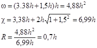 Решив это уравнение найдем: h=0,84 м ω=1,5h2 +5,48h=5,66м2 R=0,67 м.